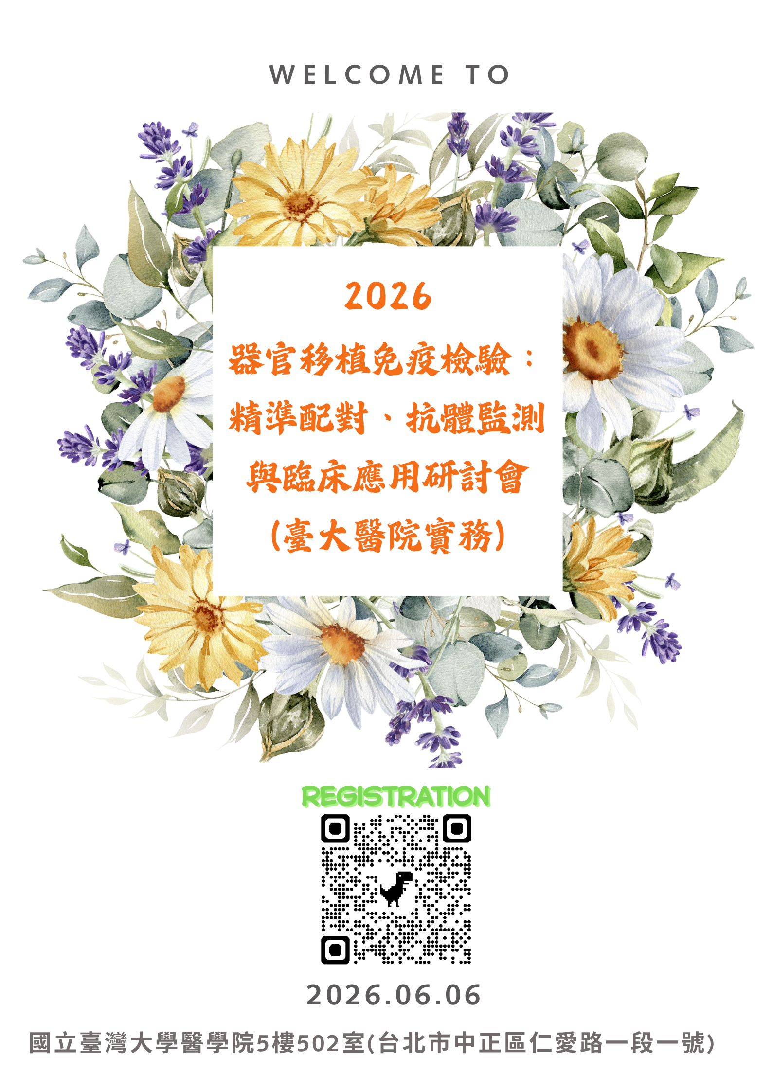 【課程訊息公告】2026器官移植免疫檢驗:精準配對、抗體監測與臨床應用研討會(臺大醫院實務),歡迎報名參加